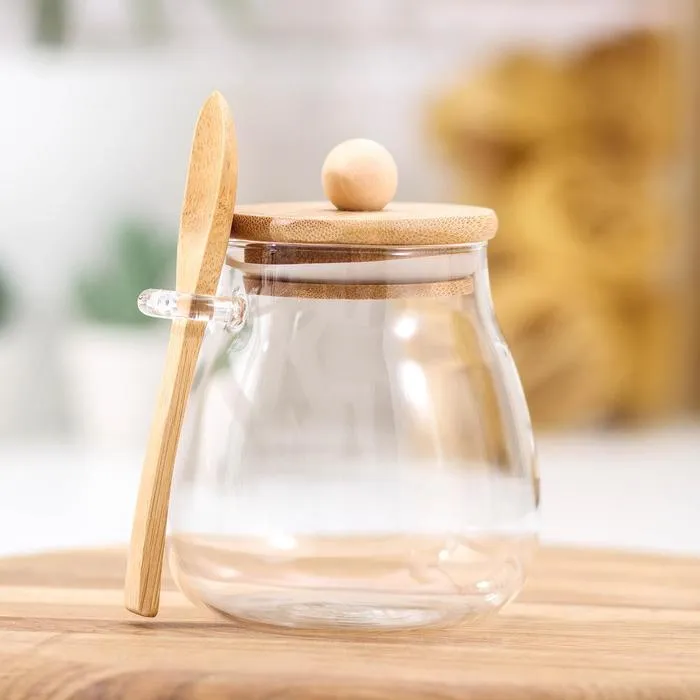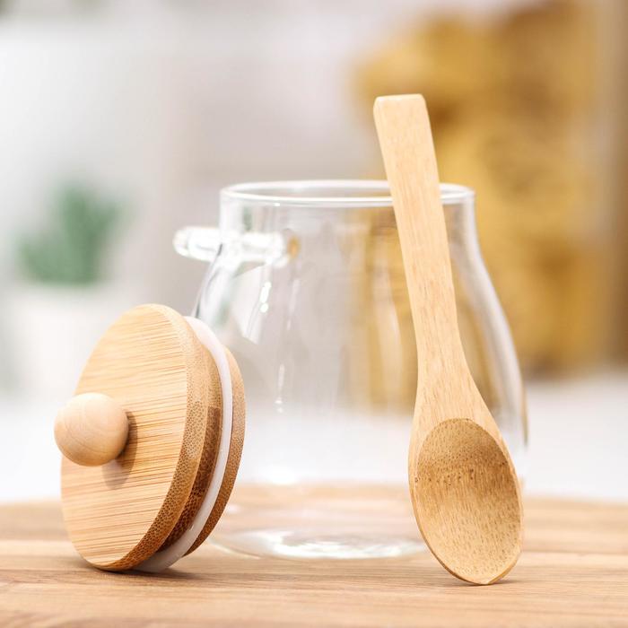 Сахарница «Эко» с ложкой, 480 мл, 9.5×9×12.5 см, с бамбуковой крышкой, стекло, прозрачная — Характеристики
