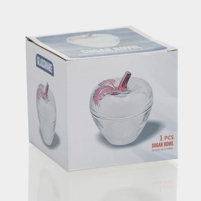 Сахарница «Яблоко» выполнена из прочного стекла, поэтому слабо подвержена повреждениям. Одновременно с тем легко моется и прекрасно впишется как на кухонном столе, так и на праздничном. Сахарницу можно использовать для хранения и подачи варенья, мёда, конфет.
