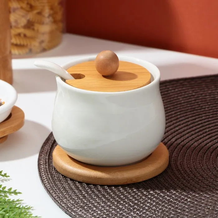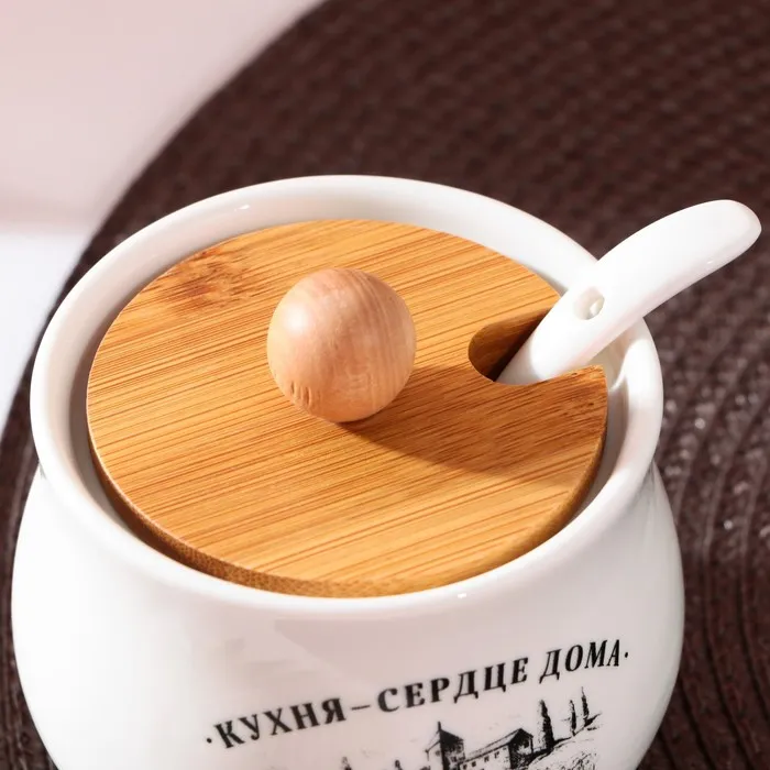 Сахарница керамическая с деревянной подставкой «Сердце дома», 230 мл, белая — Характеристики