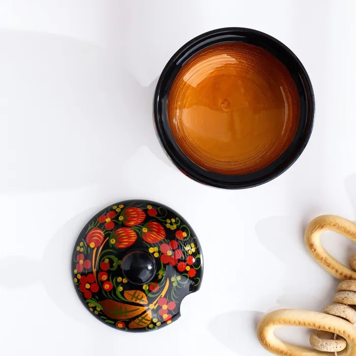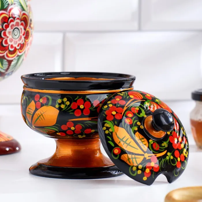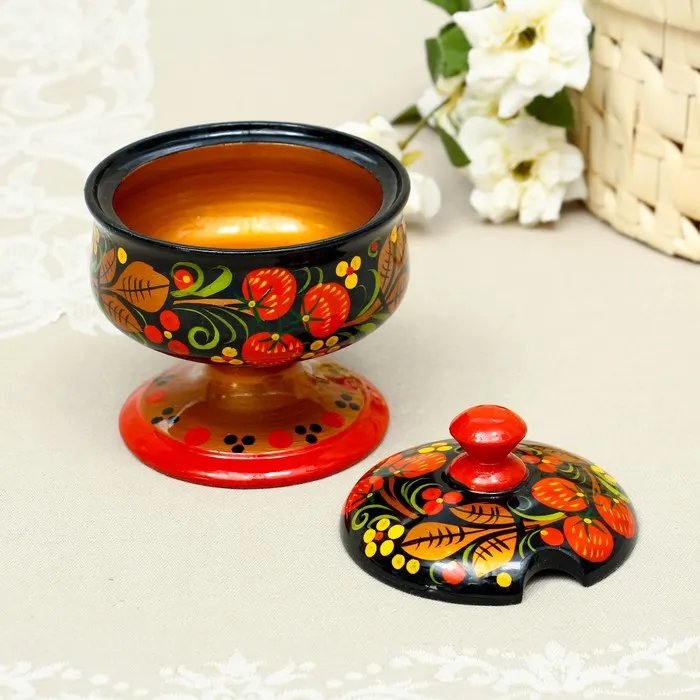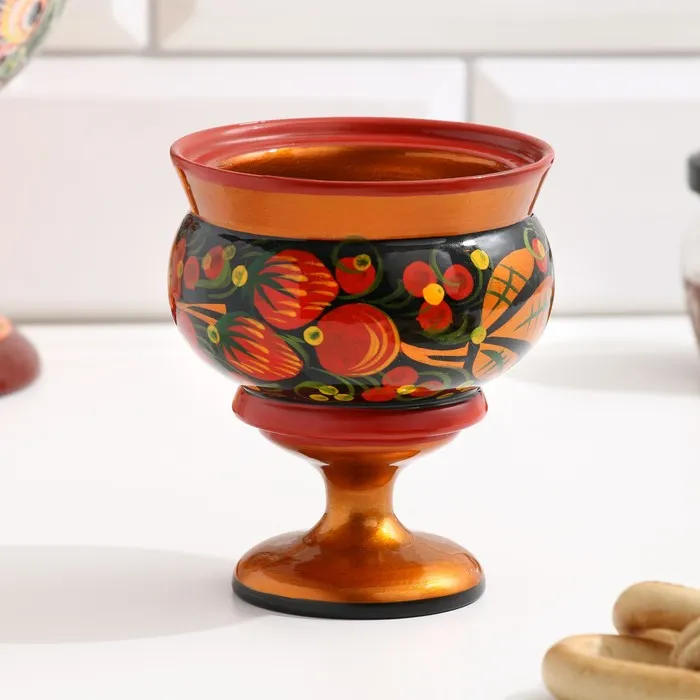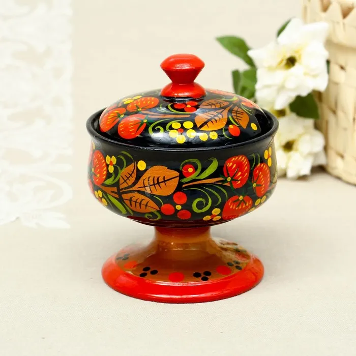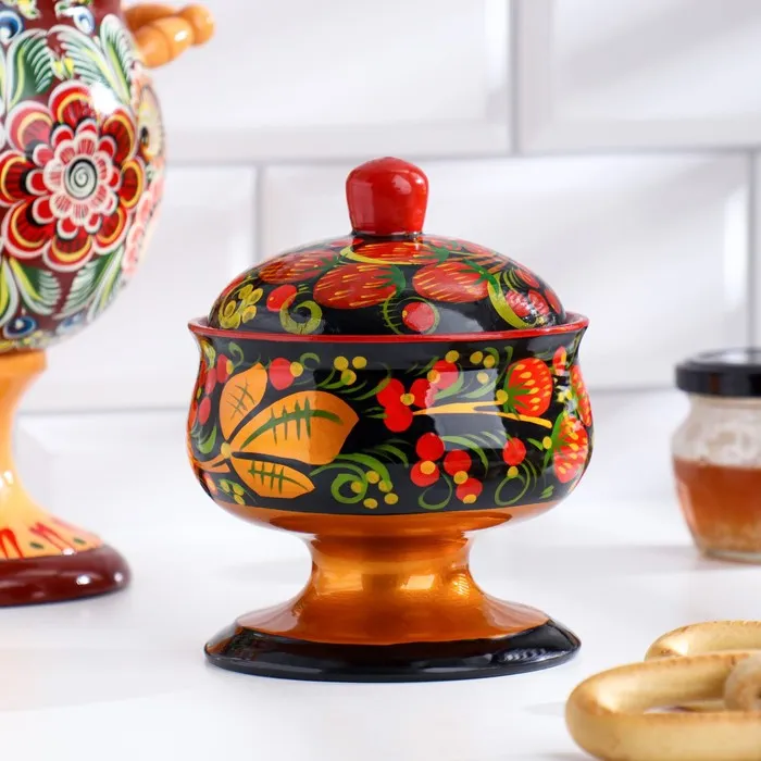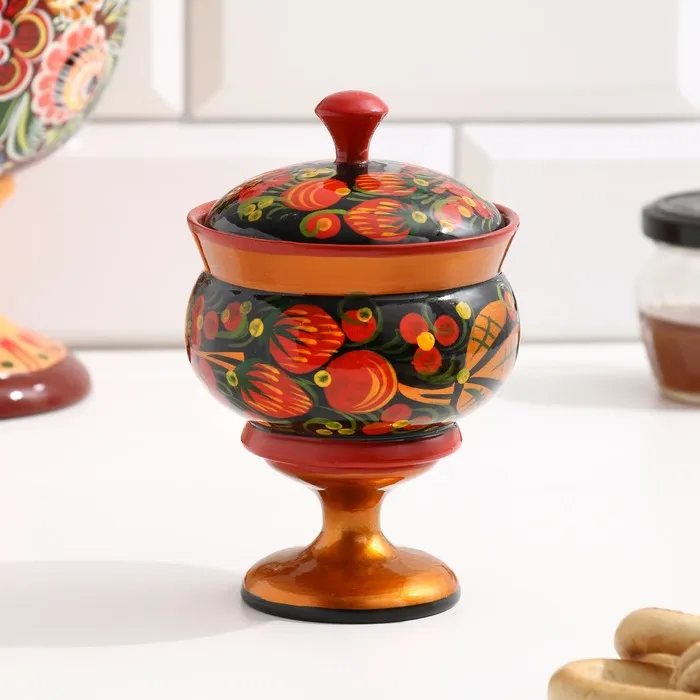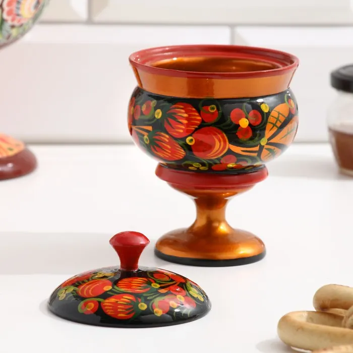 Сахарница на ножке, 9×9×13 см, дерево хохлома