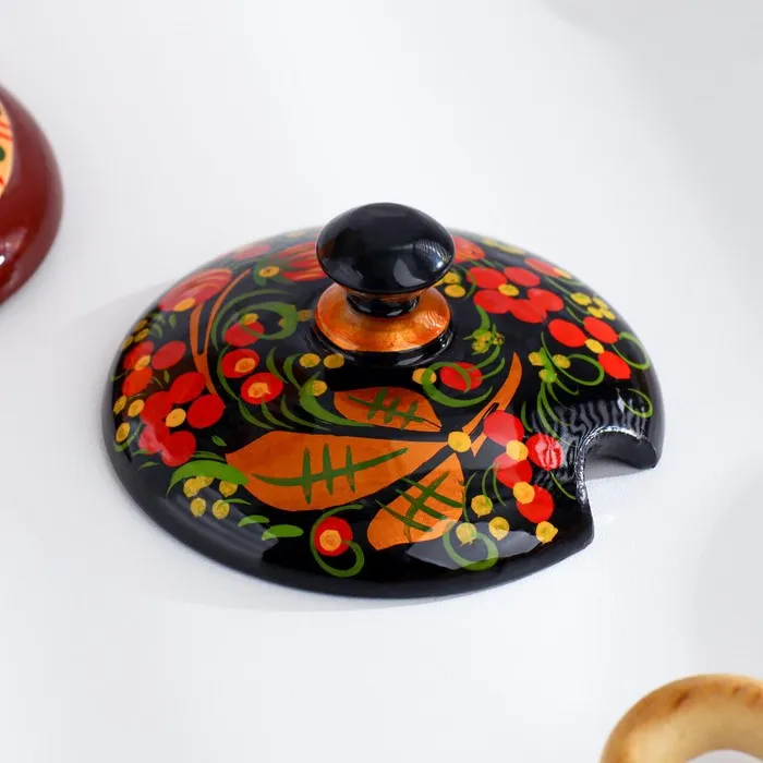 Сахарница на ножке, 9×9×13 см, дерево хохлома — Характеристики