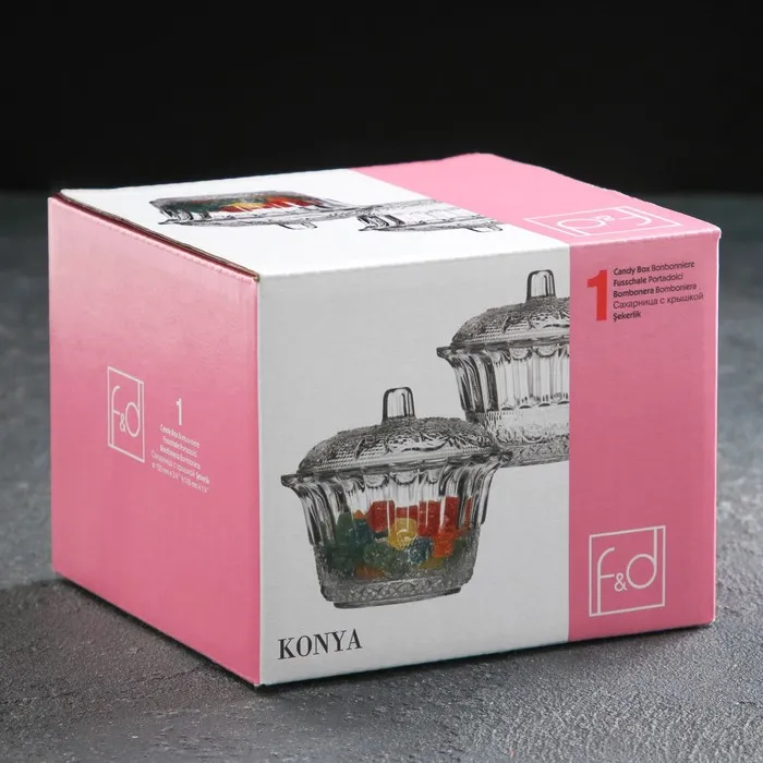 Сахарница Paşabahçe Konya, d=12 см, с крышкой, стекло, прозрачная — Характеристики