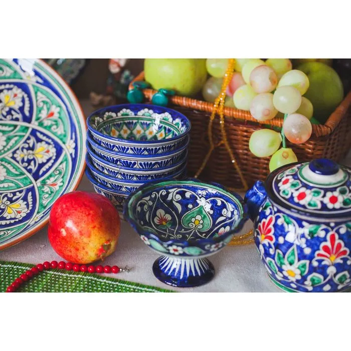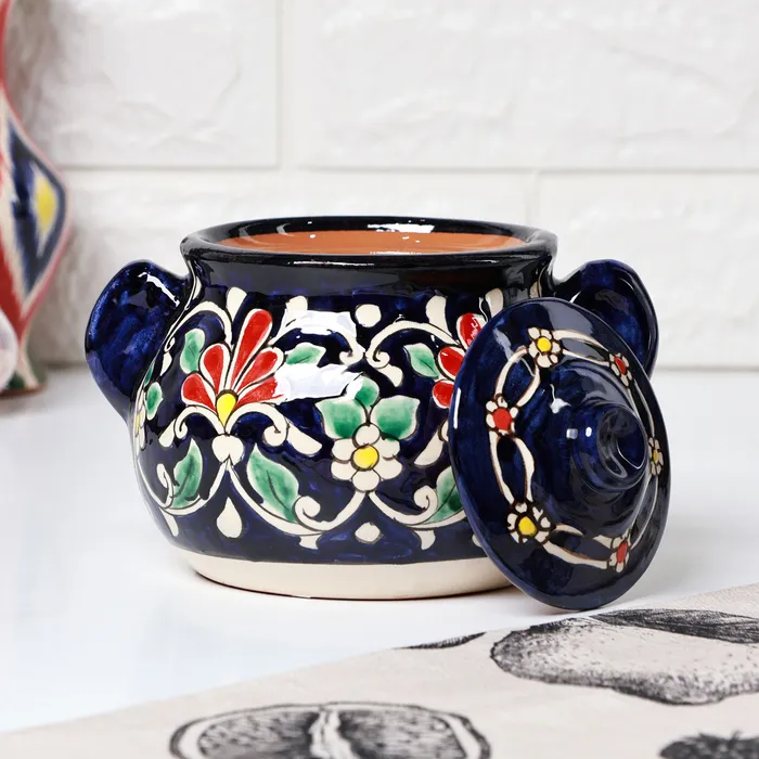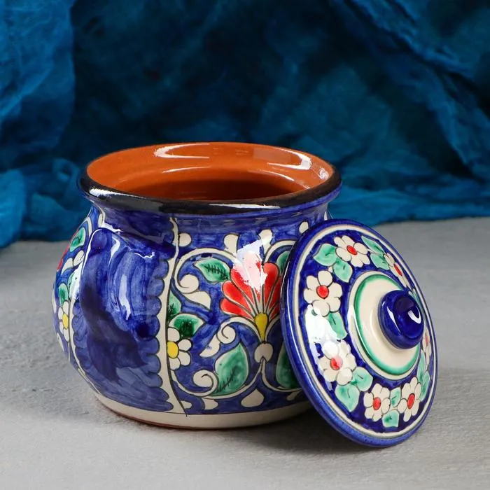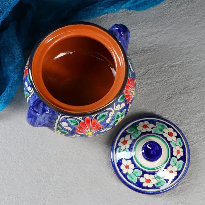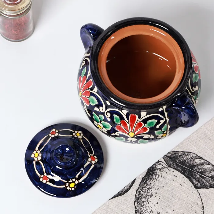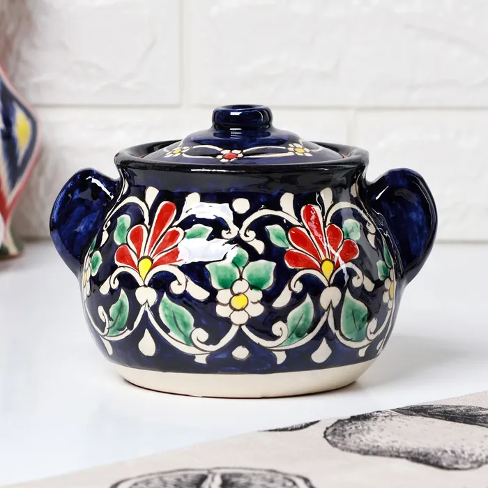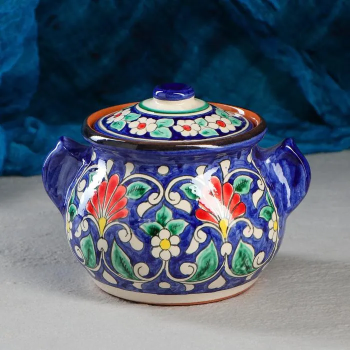 Сахарница Риштанская Керамика "Цветы", 1 л, синяя — Характеристики