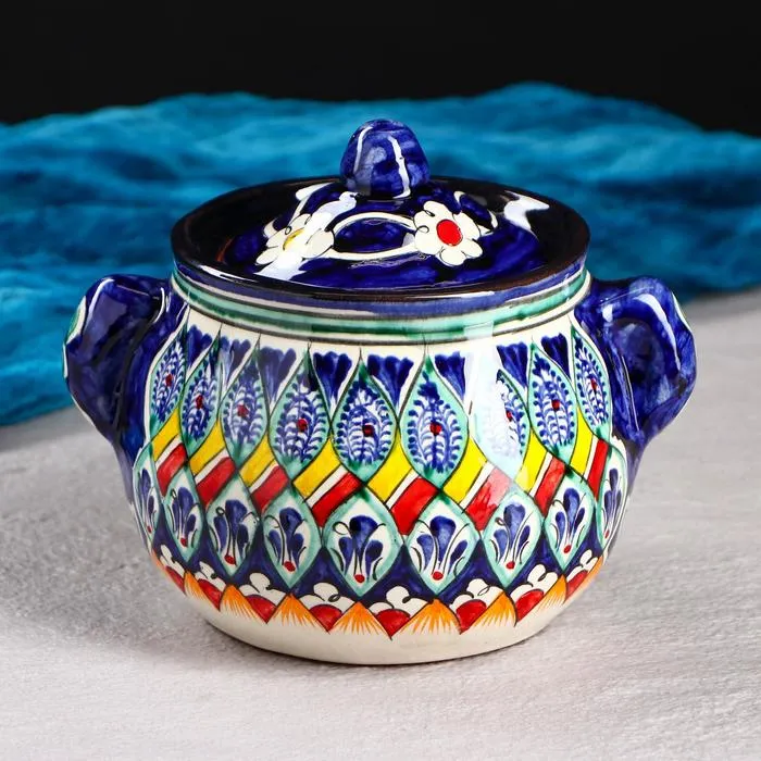 Сахарница Риштанская Керамика "Узоры", 800 мл, синяя — Характеристики
