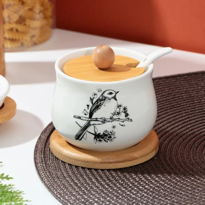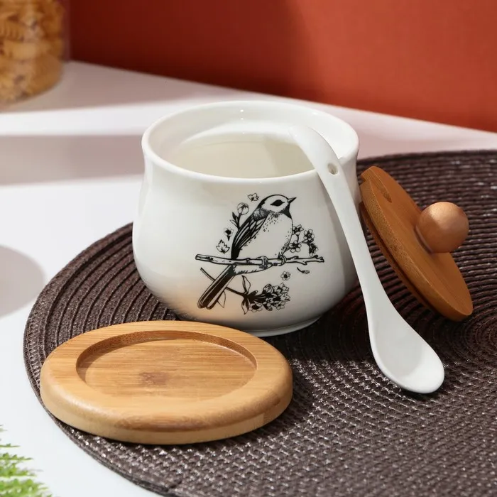 Сахарница с деревянной подставкой «Птичка», 230 мл — Характеристики