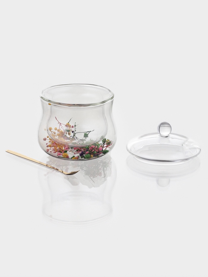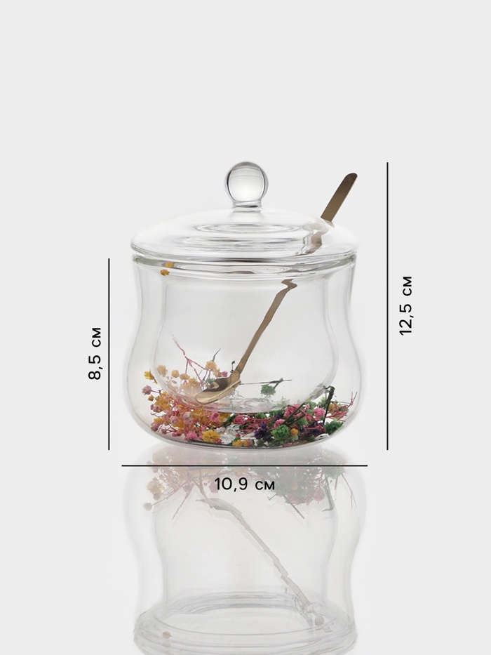 Сахарница с двойными стенками «Флора», 300 мл, 11×12 см, с сухоцветами, с ложкой, стекло, прозрачная — Характеристики