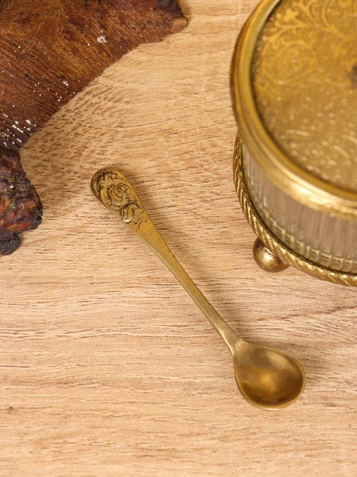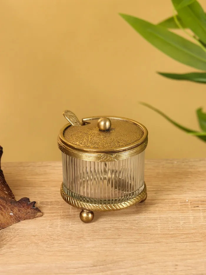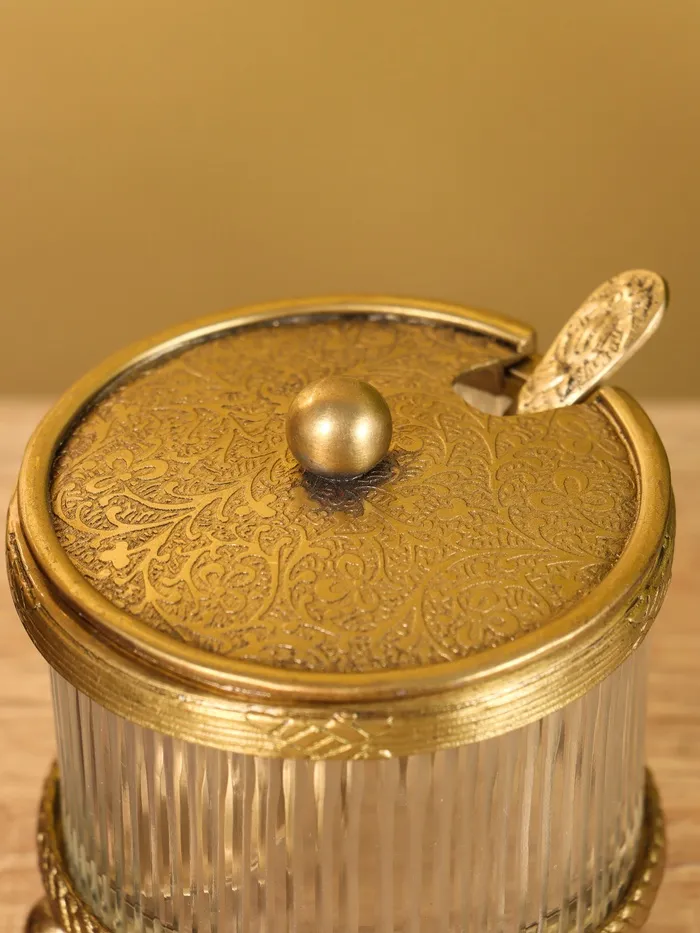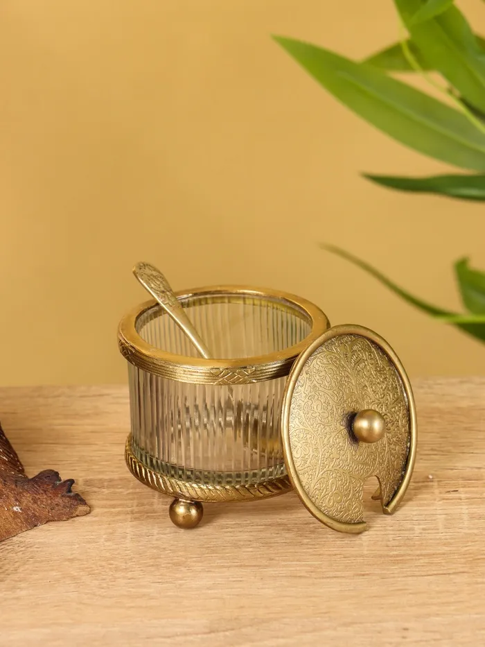 Сахарница с ложечкой «Сластёна», латунь, стекло, 7×7×7.6 см