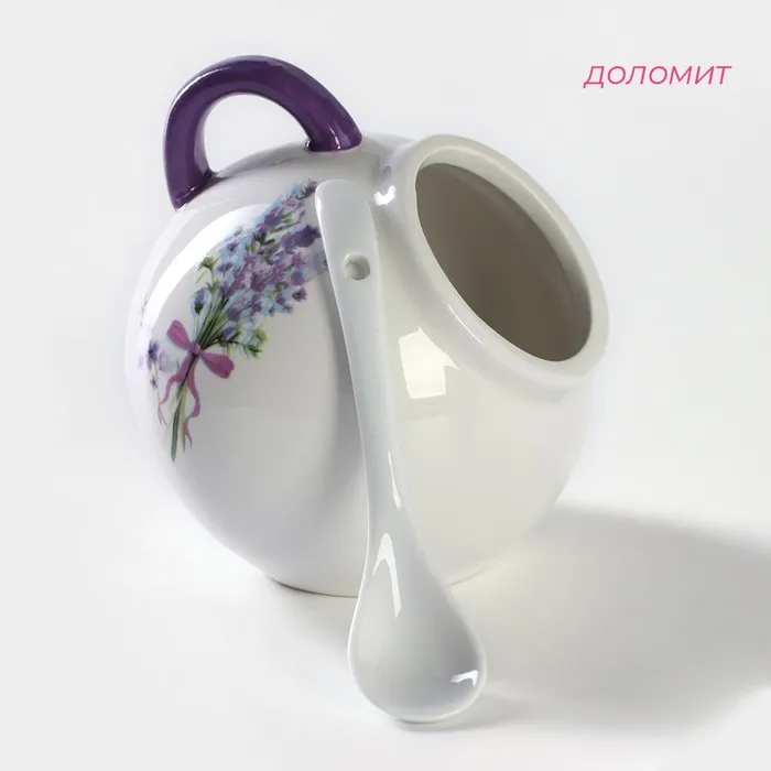 Сахарница с ложкой Доляна «Лаванда», 200 мл, 9×9 см — Характеристики