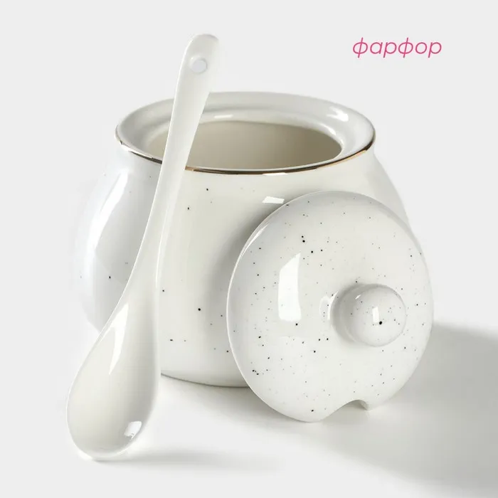Сахарница гармонично дополнит сервировку стола. Элегантное изделие отличает высокое качество обработки поверхности.Данная посуда универсальная, подходит как для сахара, так и для мёда, конфет, изюма, орехов и многого другого.