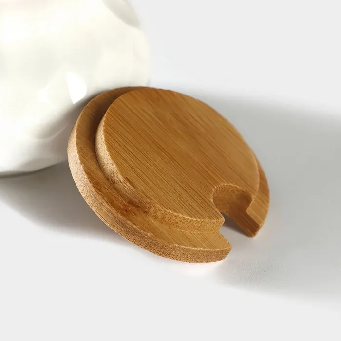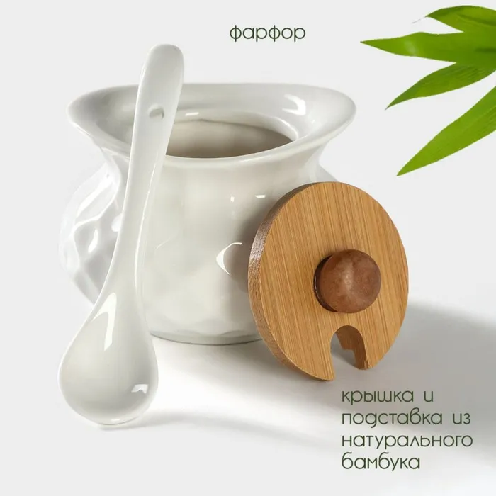 Сахарница с ложкой на бамбуковой подставке BellaTenero, 140 мл, фарфор, белая — Характеристики