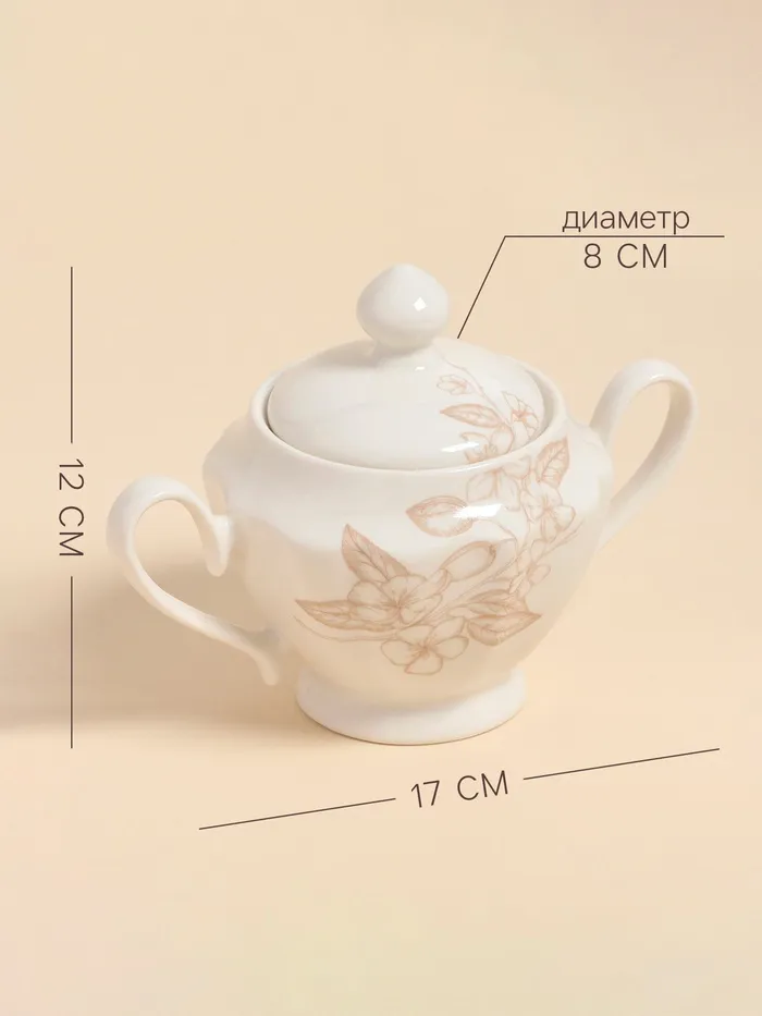 Создайте атмосферу уюта и теплоты в доме с этой изысканной сахарницей, которая станет не только функциональным, но и стильным элементом вашего сервиза. Изготовленная из нового костяного фарфора, она радует глаз своим нежным цветом и очаровательным цветочно-растительным рисунком.