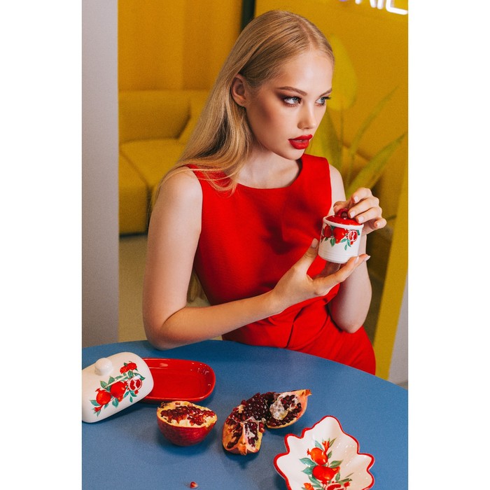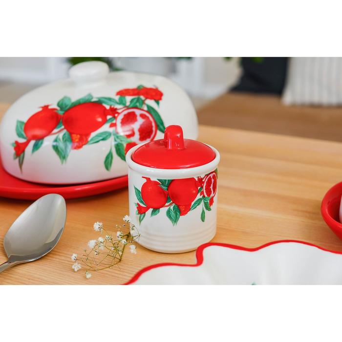 Сахарница-солонка Доляна «Гранат», 150 мл, d=7 см, доломит, белая, красная — Характеристики