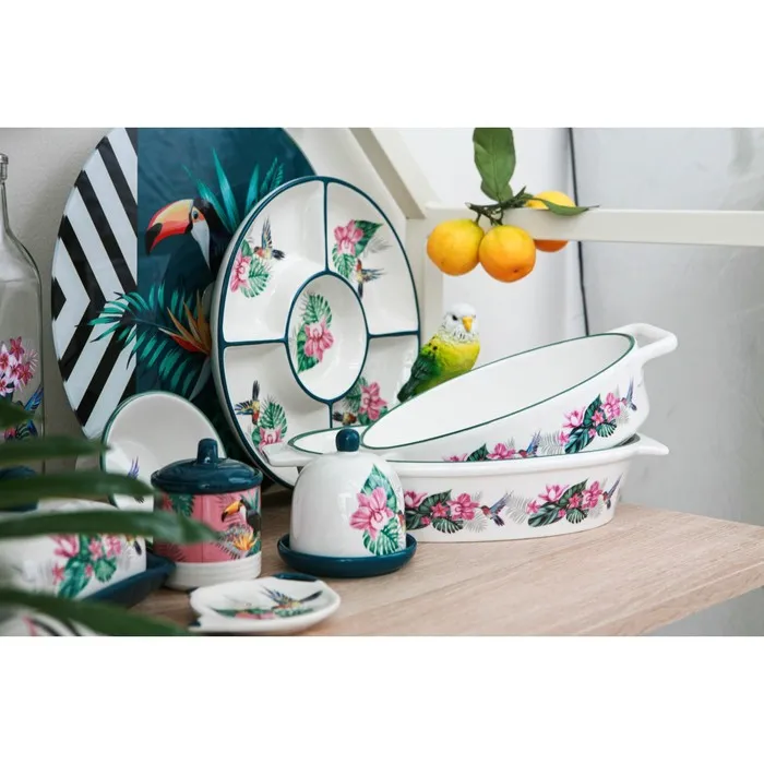 Сахарница Доляна «Тропики» изготовлена из качественного доломита. Благодаря оригинальному дизайну изделие гармонично дополнит сервировку стола, а также прекрасно подойдёт в качестве подарка. Посуда выполнена в приятных тонах, что позволит вписать её практически в любой интерьер. Доломитовая сахарница универсальная и подходит не только для сахара, но и для мёда, конфет, изюма, орехов и многого другого.
