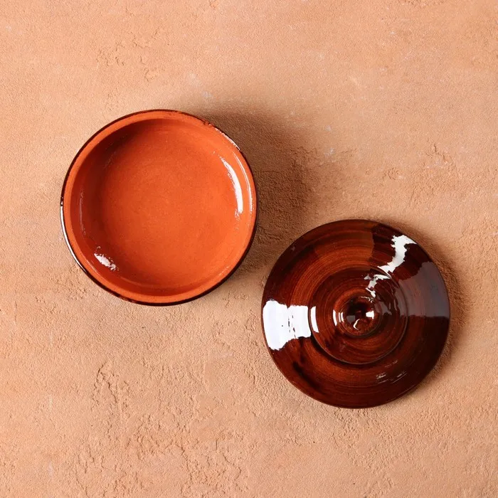 Узбекская керамическая сахарница «Акташ» — это минималистичный акцент на столе, сочетающий простоту формы и традиционное мастерство. Её насыщенный коричневый цвет создает ощущение тепла, как будто "горный камень согревает ваш обеденный стол".