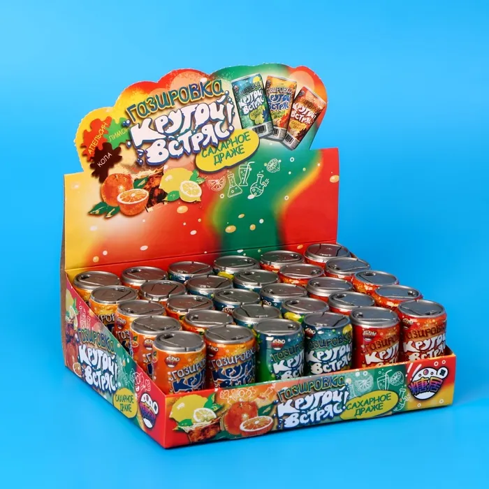 Сахарное драже "Крутой встряс" в виде популярной газировки - это оригинальный сладкий подарок для мальчиков и девочек! Драже в индивидуальной упаковке с ярким дизайном, которую можно взять с собой на прогулку, в поездку, путешествие, в детский сад или школу. Такое угощение придется по вкусу любому сладкоежке! Прекрасный подарок детям на любой праздник.