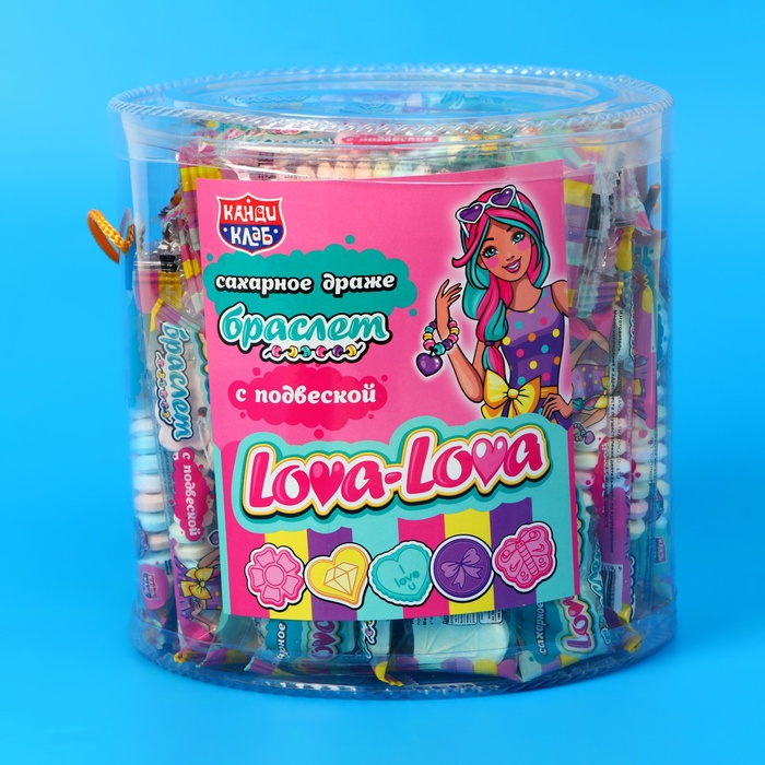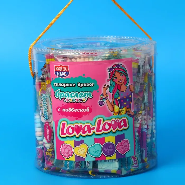 Сахарное драже " Lova-Lova" в виде браслета c подвеской" - это оригинальный сладкий подарок для мальчиков и девочек! С этими конфетами вы погрузитесь в захватывающее путешествие по разнообразным вкусам и ароматам, которые точно разнообразят вашу повседневность. Такой десерт в индивидуальной упаковке с ярким дизайном можно взять с собой на прогулку, в поездку, путешествие, в детский сад или школу. Такое угощение придется по вкусу любому сладкоежке! Прекрасный подарок детям на любой праздник.