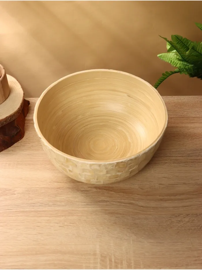 Салатник 25×25×12 см из бамбука — это идеальное сочетание эстетики и практичности. Элегантный бежевый оттенок материала в сочетании с изысканными узорами из ракушки делает его настоящим произведением искусства. Ручная работа добавляет уникальности каждому изделию, а гладкая текстура приятно смотрится и ощущается. Круглая форма подходит для подачи как горячих, так и холодных блюд. Обратите внимание, что салатник не используется в СВЧ-печи и посудомоечной машине, что делает его идеальным выбором для ручного ухода.