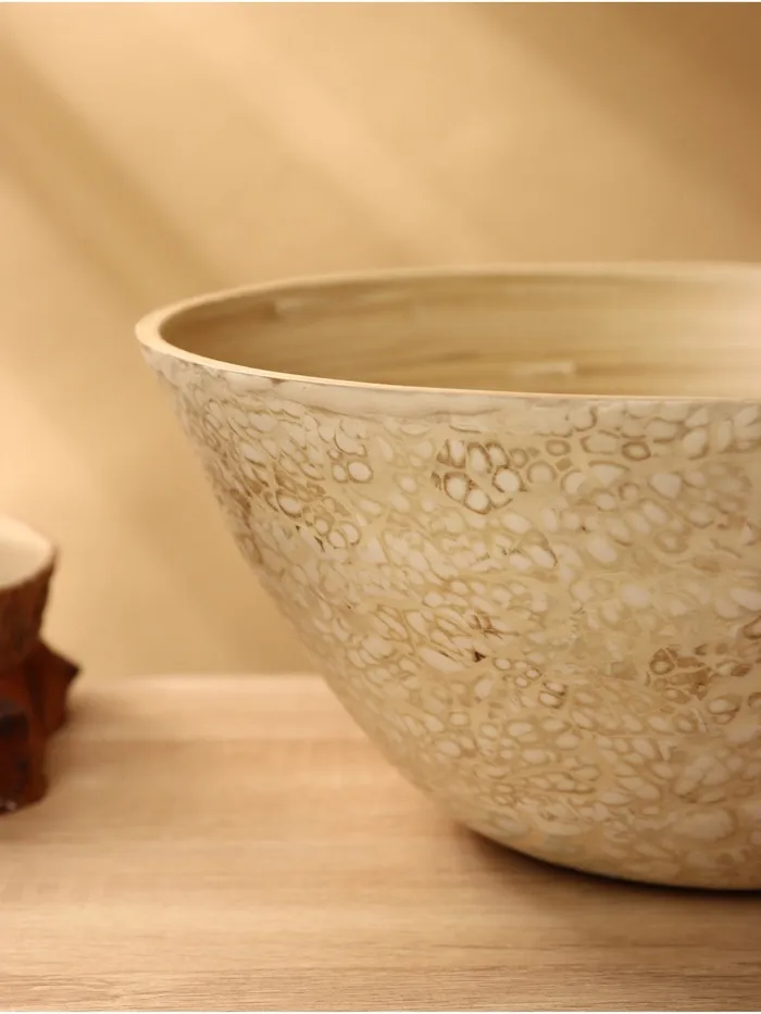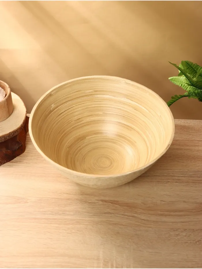 Элегантный салатник, выполненный из натурального бамбука, станет неотъемлемой частью вашего стола. Цвет изделия — бежевый, гармонично сочетается с любым интерьером, а изысканные узоры придают ему индивидуальность. Диаметр посуды составляют 29 см, форма — элегантно изогнутая трапеция, плавно переходящая в круг. Хотя салатник нельзя использовать в микроволновой печи и мыть в посудомоечной машине, ручная обработка и гладкая текстура создают чувство особой нежности и заботы. Идеален для сервировки горячих блюд.
