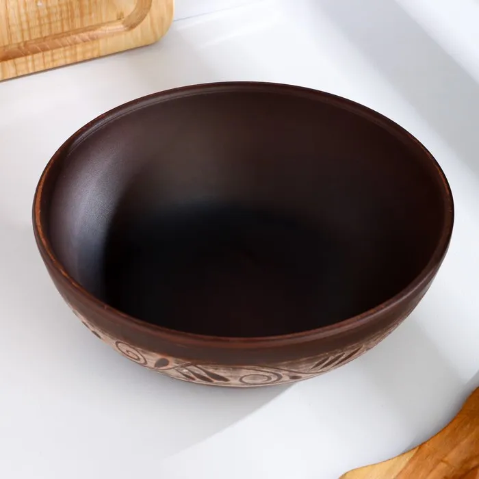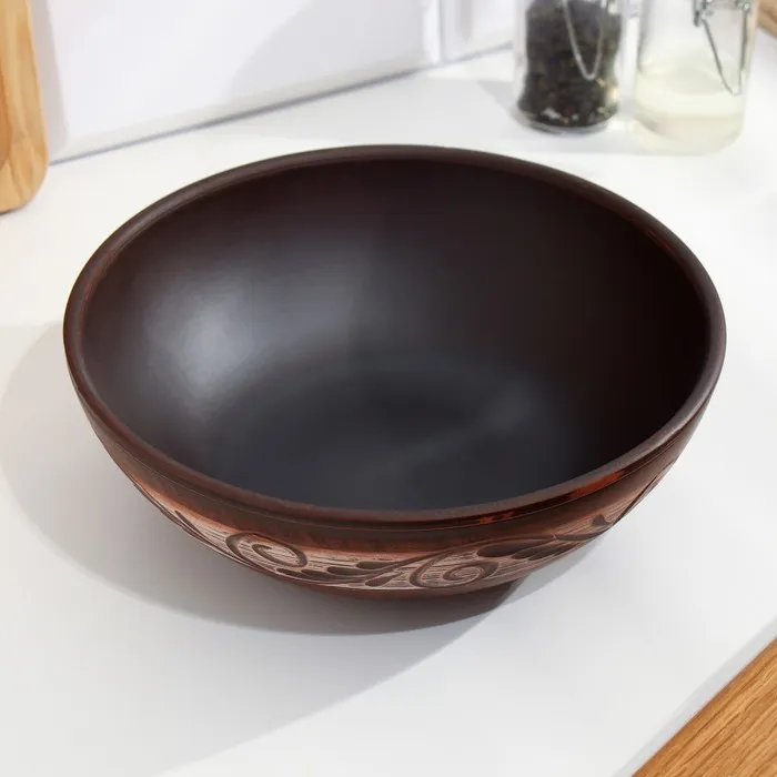 Салатник «Ангоб», 1 л, 6×18.5 см, красная глина