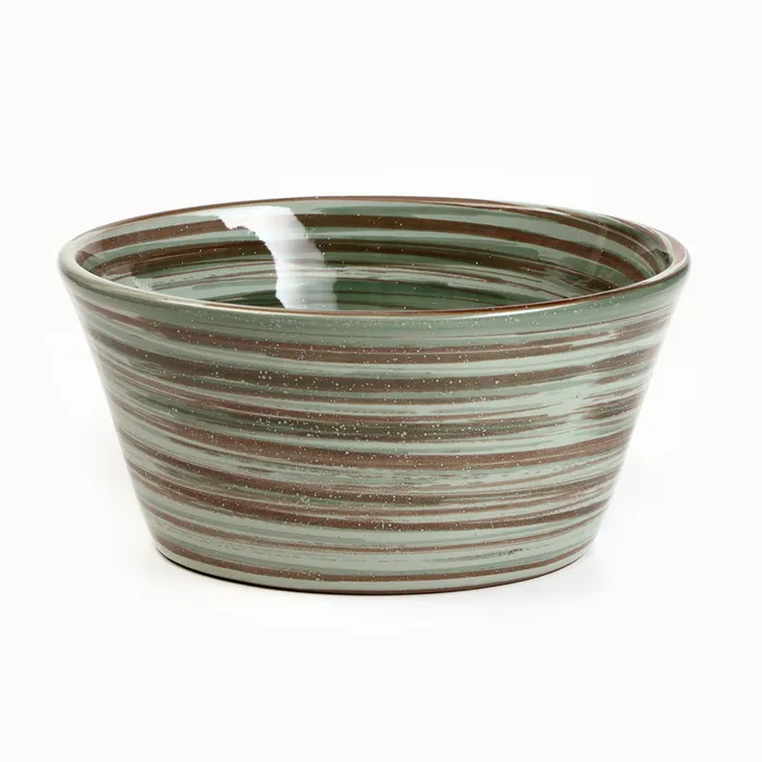 Зелёный керамический салатник с вертикальными полосками — будто вынутый из скандинавской кухни, где порядок, свет и функциональность становятся стилем жизни. Его объём — 500 мл — идеален для порционной подачи: свежий овощной салат, тёплый бургундский картофель или зерновая каша с маслом. Круглая форма и гладкая глазурованная поверхность делают его удобным в использовании каждый день.