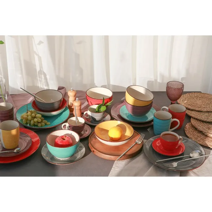 В серию входят тарелки, салатники, кружки, чайные пары.