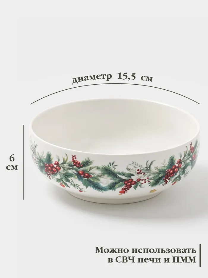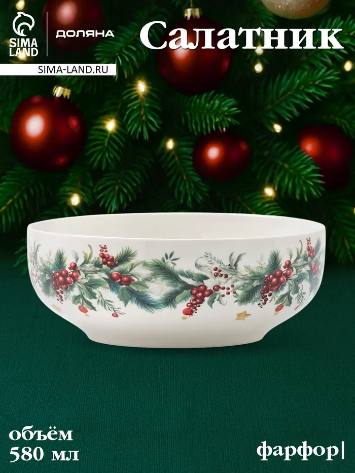 Салатник Доляна «Новогодние подарки», 580 мл, 15.5×6 см, фарфор, белый — Характеристики
