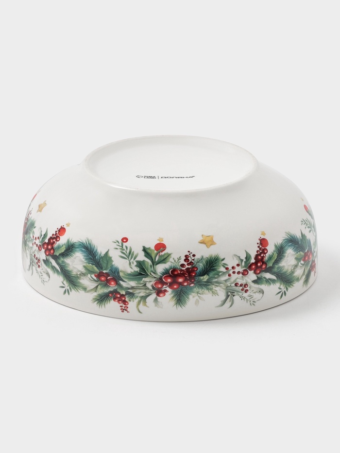 Этот небольшой фарфоровый салатник станет не просто частью вашей кухни, но и элементом самовыражения. Гармонируя с новогодней темой, он придаёт сервировке праздничное настроение. Универсальность и практичность сочетаются с возможностью экспериментировать с подачей, привнося в ваш дом частицу зимнего волшебства.