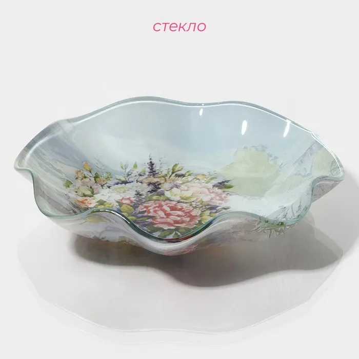 Салатник Доляна «Весенний роман», 600 мл, 19×3.7 cм, стекло, голубой — Характеристики