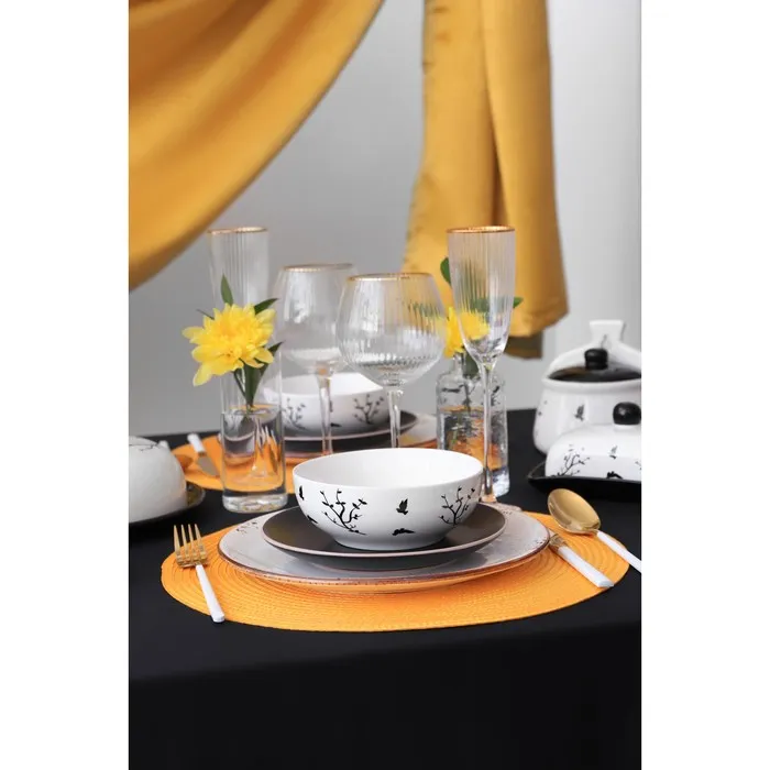 Посуда сервировочная Доляна «Весенний вечер» изготовлена из качественного доломита. Предметы выполнены в чёрно-белых тонах, поэтому они подойдут практически для любой сервировки разных стилей, а также с лёгкостью украсят интерьер вашей кухни.
