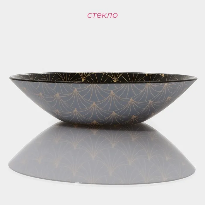 Салатник Доляна «Золотое перо», 1.1 л, 22.5×5 см, стекло, чёрный — Характеристики