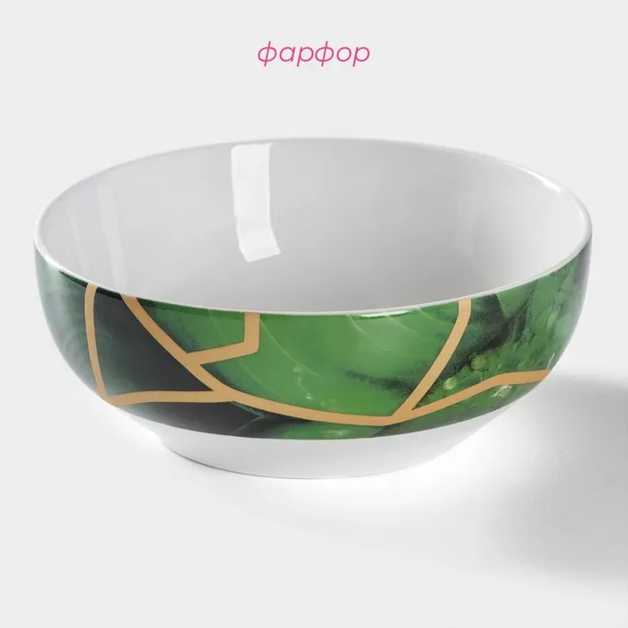 Салатник фарфоровый Доляна «Малахитовая шкатулка», 600 мл, d=15,5 см, цвет зелёный — Характеристики
