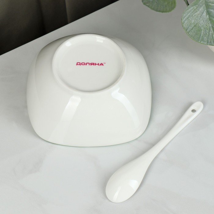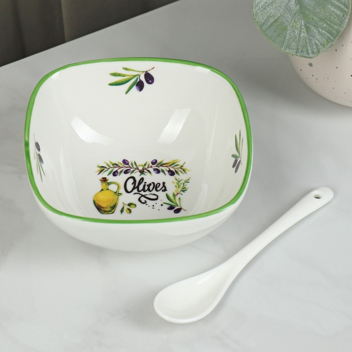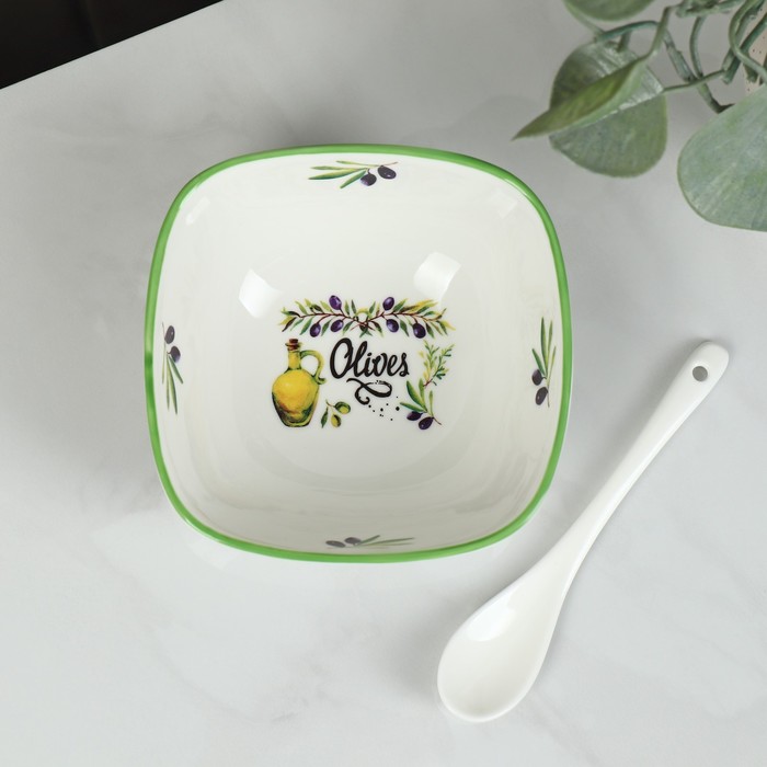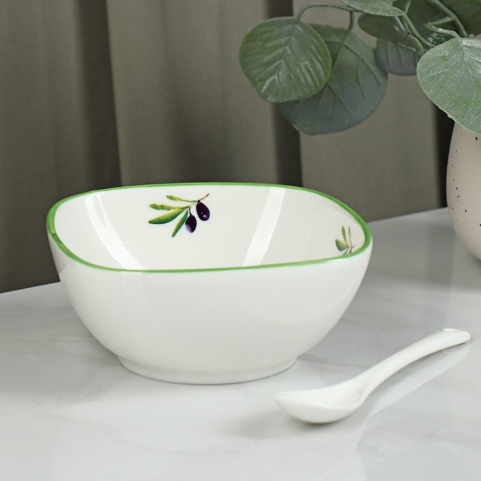 Салатник фарфоровый с ложкой Доляна «Олива», 300 мл — Характеристики