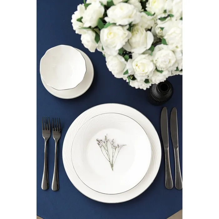 Посуда Magistro серии La Perle покорит лаконичным дизайном и молочной белизной натурального фарфора. Современная форма предметов подчеркнута элегантной серебряной окантовкой. Изделия из линейки La Perle можно использовать как в повседневной, так и в праздничной сервировке. Посуда станет чудесным подарком и дополнит коллекцию столового семейного фарфора.