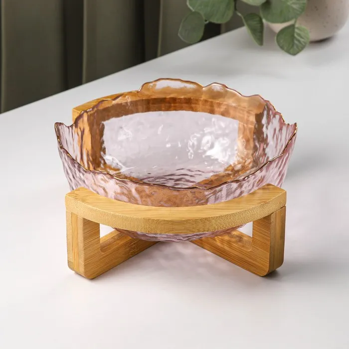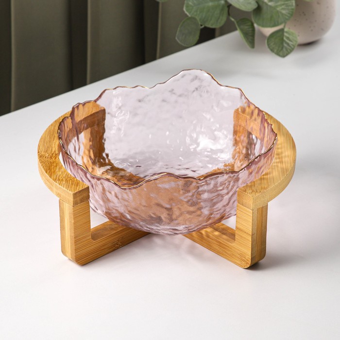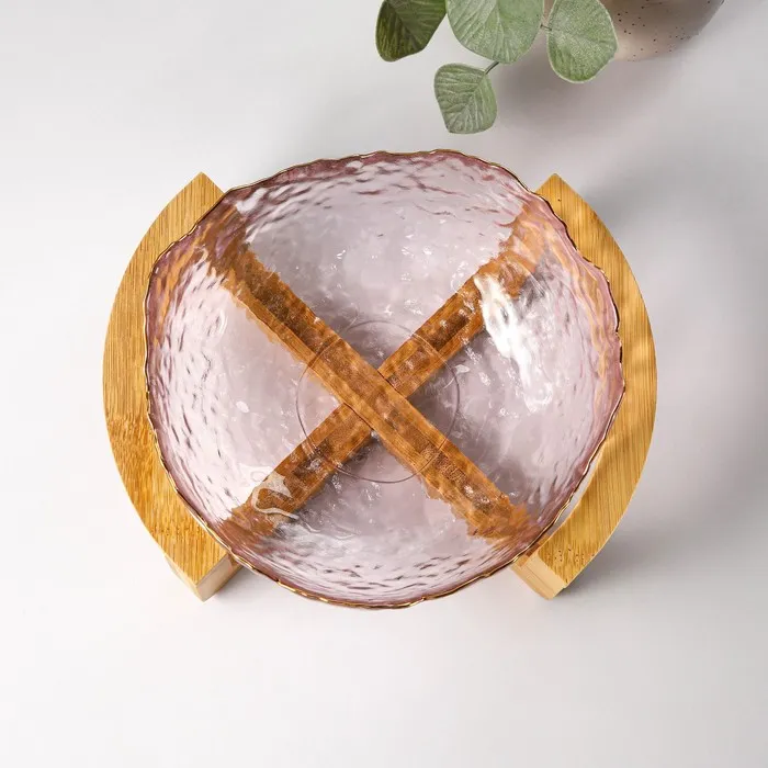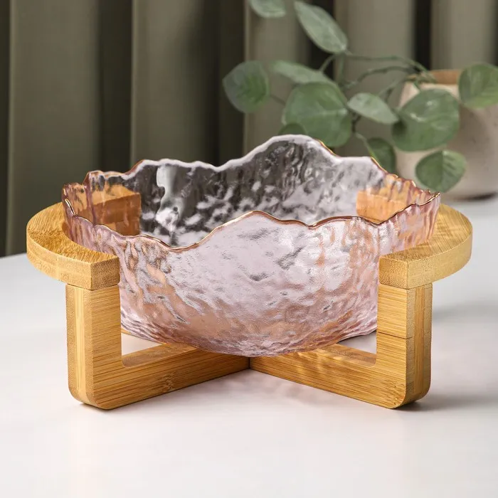 Салатник «Иней. Розовый» 1.1 л, 23×20×10.5 см, на подставке, стекло, розовый — Характеристики