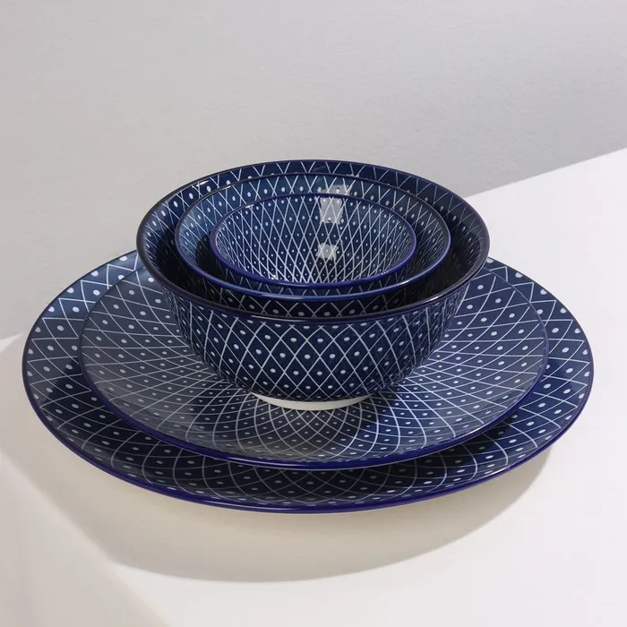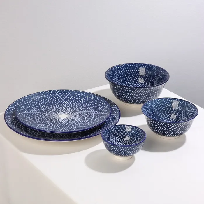 Серия посуды Доляна «Бодом» создана для идеальной сервировки вашего стола. Глубокий и насыщенный синий цвет в сочетании с белым орнаментом придают изделиям особенный вид. Посуда изготовлена из прочной керамики, устойчива к повреждениям и перепадам температур.