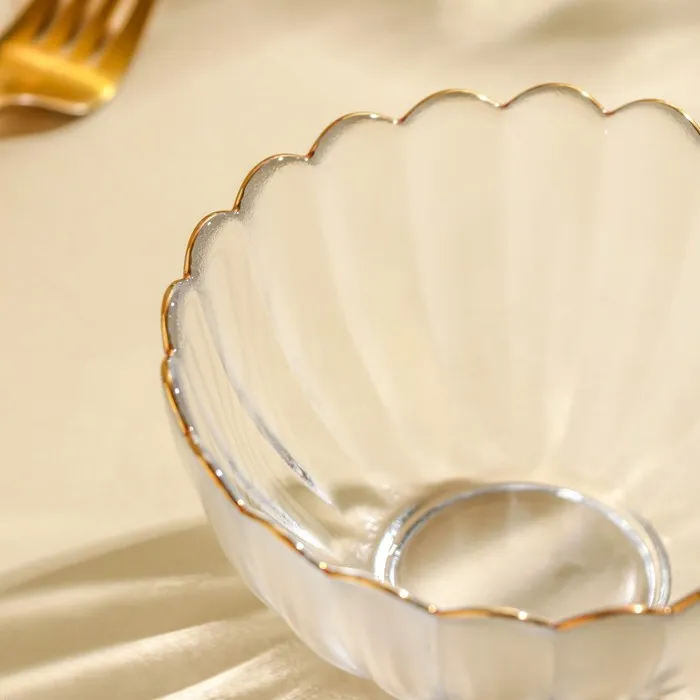 Стеклянная фигурная миска с рельефом и золотой отделкой объёмом 290 мл станет изящным дополнением сервировки для холодных закусок и десертов. Прозрачное стекло подчёркивает естественные цвета блюд, а оригинальный дизайн придаёт столу особую атмосферу.