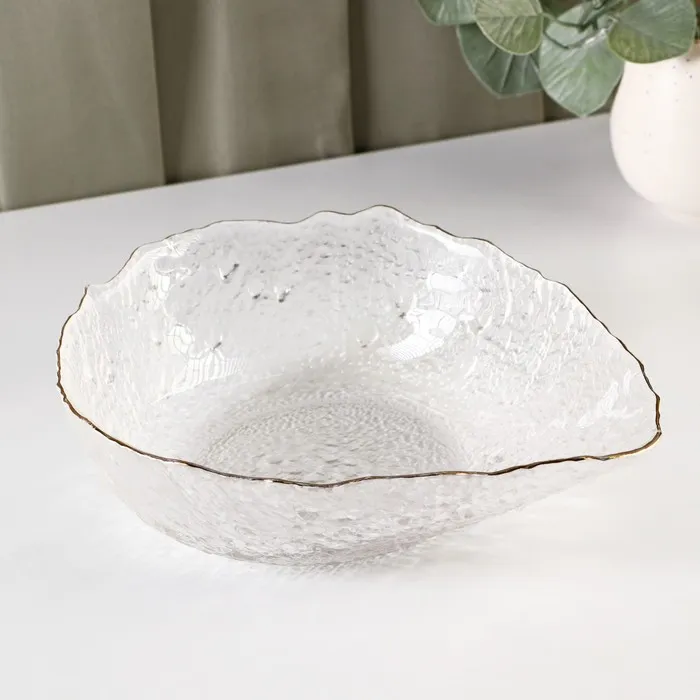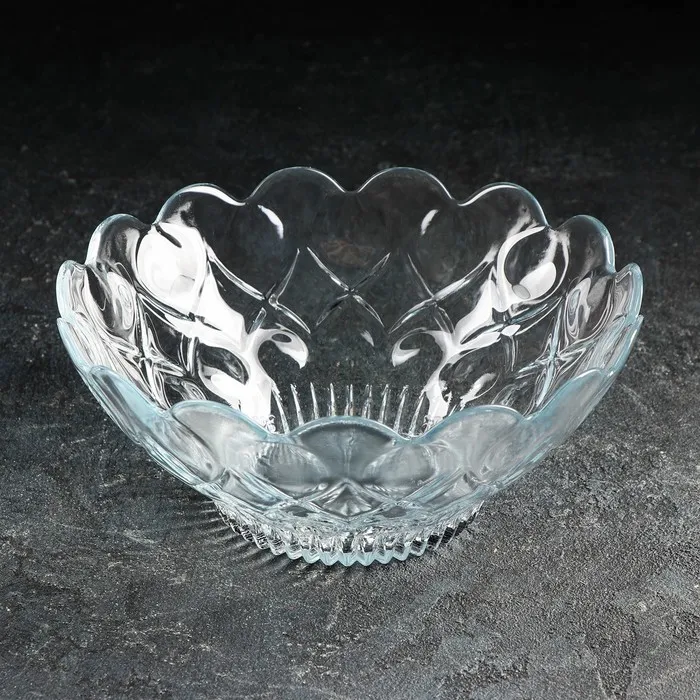• Фигурная форма с рельефом: оформление придаёт посуде уникальность и подчёркивает её прозрачность, создавая игру света и оттенков на поверхности блюда.