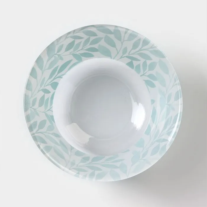 Глубокая стеклянная миска диаметром 12 см с растительным узором станет универсальным решением для подачи горячих и холодных блюд. Лёгкая и прочная, она впишется в повседневную сервировку, подчёркивая естественность и свежесть подачи.
