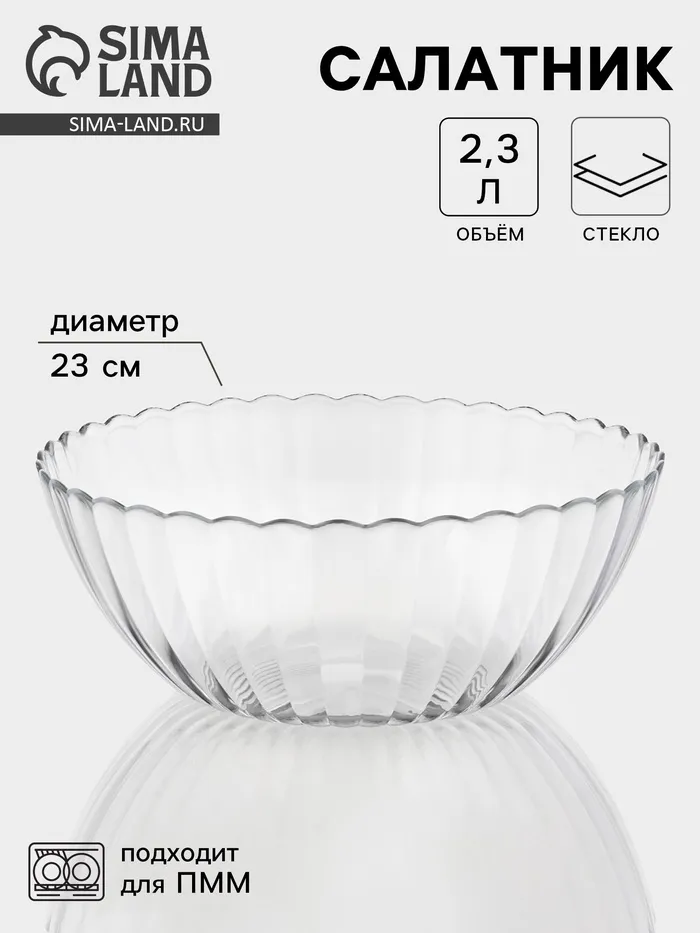Салатник «Магия», 2.3 л, d=23 см, стекло, прозрачный — Характеристики