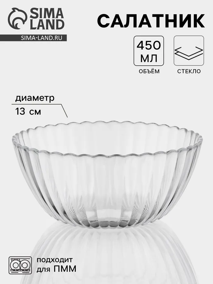 Салатник «Магия», 450 мл, d=13 см, стекло, прозрачный — Характеристики