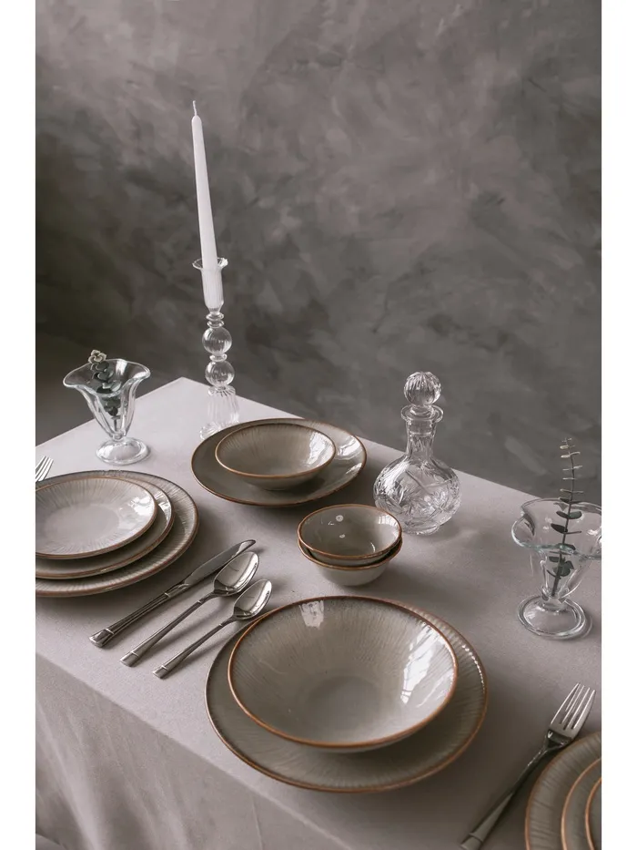 Изготовленный из высококачественного фарфора, он обладает гладкой текстурой и приятным серым цветом, что делает его универсальным для любого интерьера. Круглая форма и отсутствие рисунка подчеркивают минималистичный дизайн.