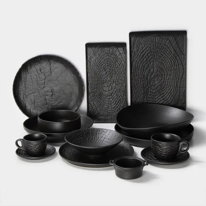 - Черный цвет подчеркивает яркость свежих овощей и зелени, делая блюдо визуально насыщенным.