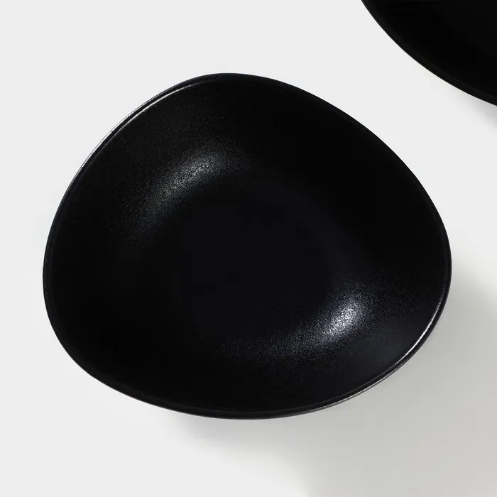 Посуда выполнена из высококачественного фарфора, матовая поверхность которого имитирует естественную фактуру камня благородного чёрного цвета. Каменная поверхность добавляет прочности изделиям, она не царапается, цвет со временем не тускнеет. Предметы из серии ощутимо тяжелее обычных фарфоровых аналогов.