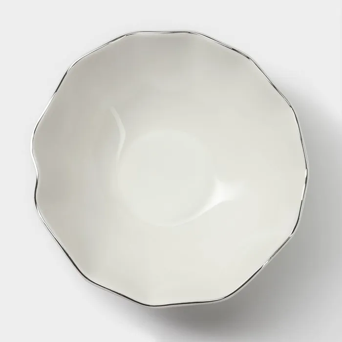 Посуда Magistro серии La Perle покорит лаконичным дизайном и молочной белизной натурального фарфора. Современная форма предметов подчеркнута элегантной серебряной окантовкой. Изделия из линейки La Perle можно использовать как в повседневной, так и в праздничной сервировке. Посуда станет чудесным подарком и дополнит коллекцию столового семейного фарфора.