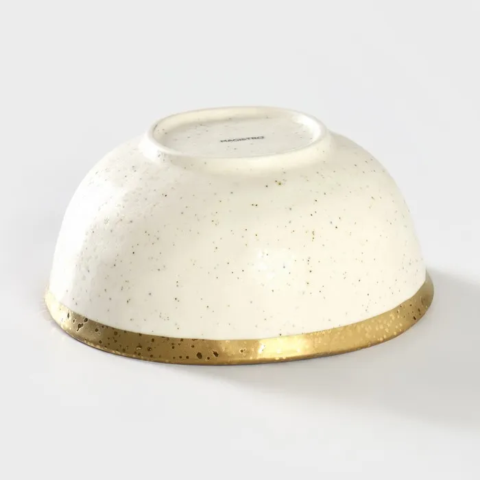 Посуда серии Magistro Poursephona — это современная фарфоровая посуда. В оформлении серии превалируют два цвета – бежевый оттенок фарфора и роскошное золото в виде широкой окантовки предметов. Идеально подходит как для формального обеда, так и для торжеств по особым случаям. Лаконичные формы, золотая окантовка, разноцветные вкрапления придают изделиям из фарфора одновременно необычный и современный вид.