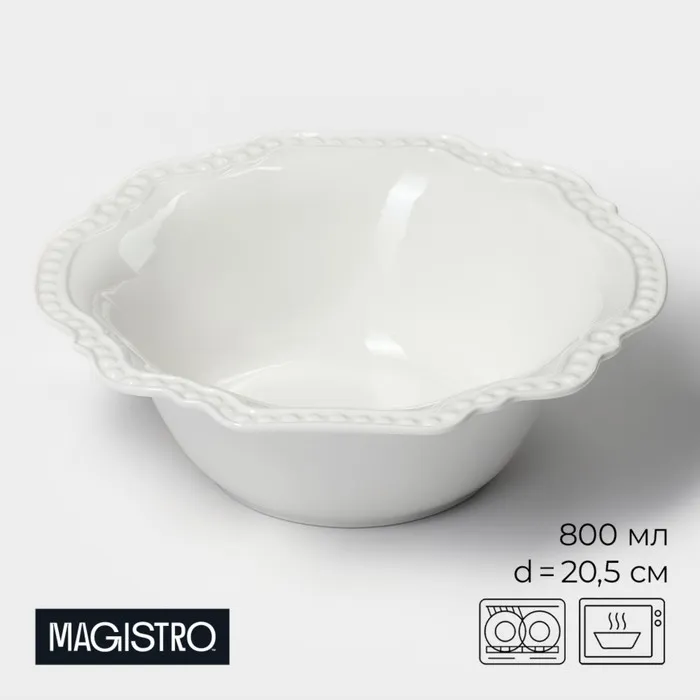 Салатник Magistro «Сюита», 800 мл, d=20.5 см, фарфор, белый — Характеристики