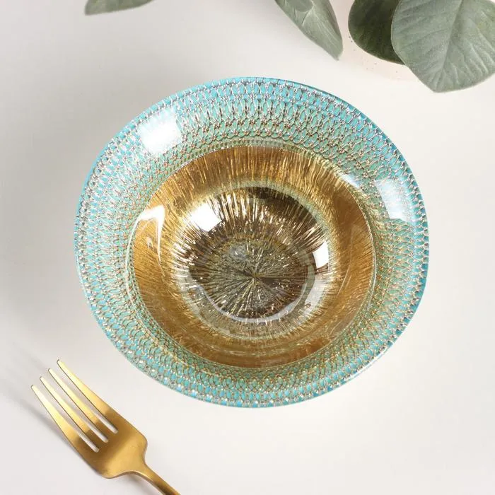 Салатник «Морион», 450 мл, d=16 см, стекло, голубой с золотом — Характеристики