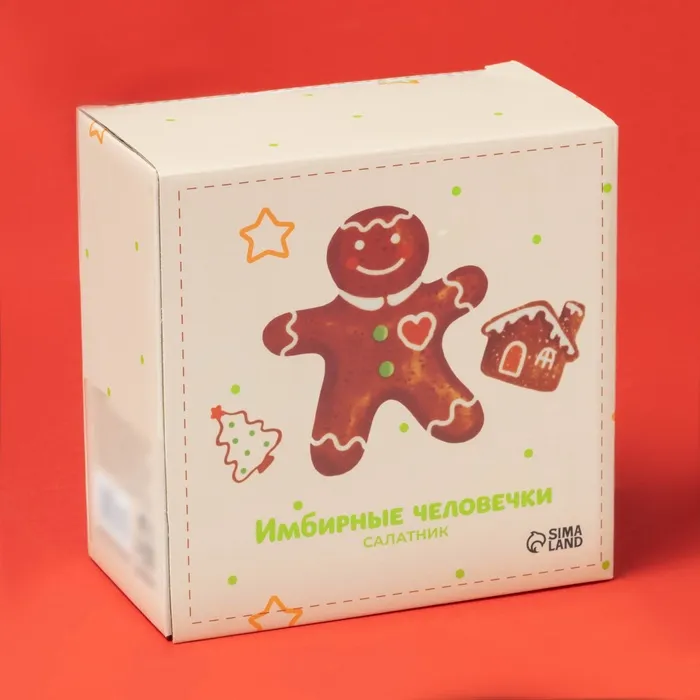 - Уникальный дизайн: Салатник украшен очаровательными имбирными человечками, что делает его не только функциональным предметом, но и настоящим украшением стола.