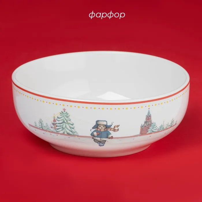 Салатник новогодний Доляна «Московский мишка», 580 мл, 15.5×6 см, фарфор, белый — Характеристики