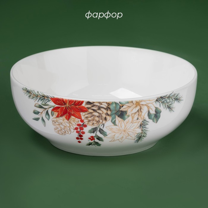 Салатник новогодний Доляна «Рождественский вечер», 580 мл, 15,5×6 см, фарфор, цвет белый — Характеристики